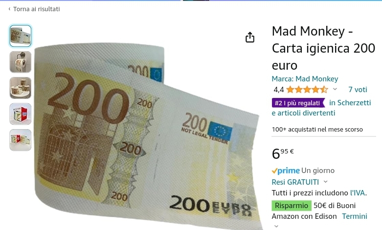 La carta igienica a forma di 200 euro è un regalo perfetto per chiunque abbia un senso dell’umorismo. È un modo divertente per dire “ti voglio bene” o “grazie”.